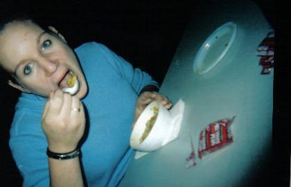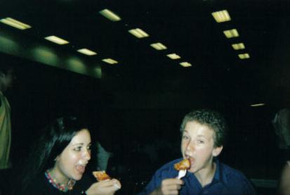 First day. Krystal and her brother Patrick STUFFING ther faces with food. |