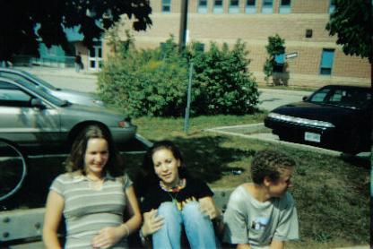 Tonya, Krystal and Patrick chillin outside. Haha, I remember that day. When we looked a group of grade 10 boys walking by, and thy looked at us and we laughed. Haha that was crazy. |